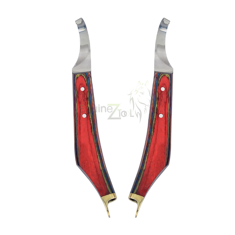 - 🔹 ERGONOMIC RED-LAMINATED WOOD HANDLE – ANTI-SLIP GRIP:- Crafted with a striking red laminated hardwood handle with ergonomic shaping for a secure, non-slip grip, this tool reduces hand strain during extended trimming sessions. Balanced design allows for enhanced precision and ease of movement around the hoof.